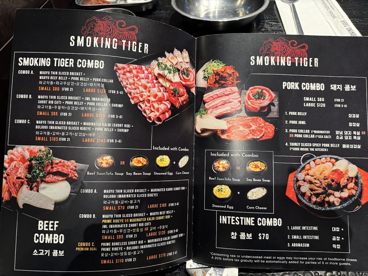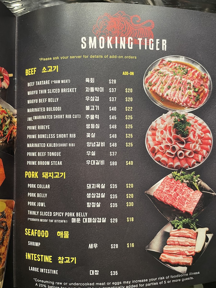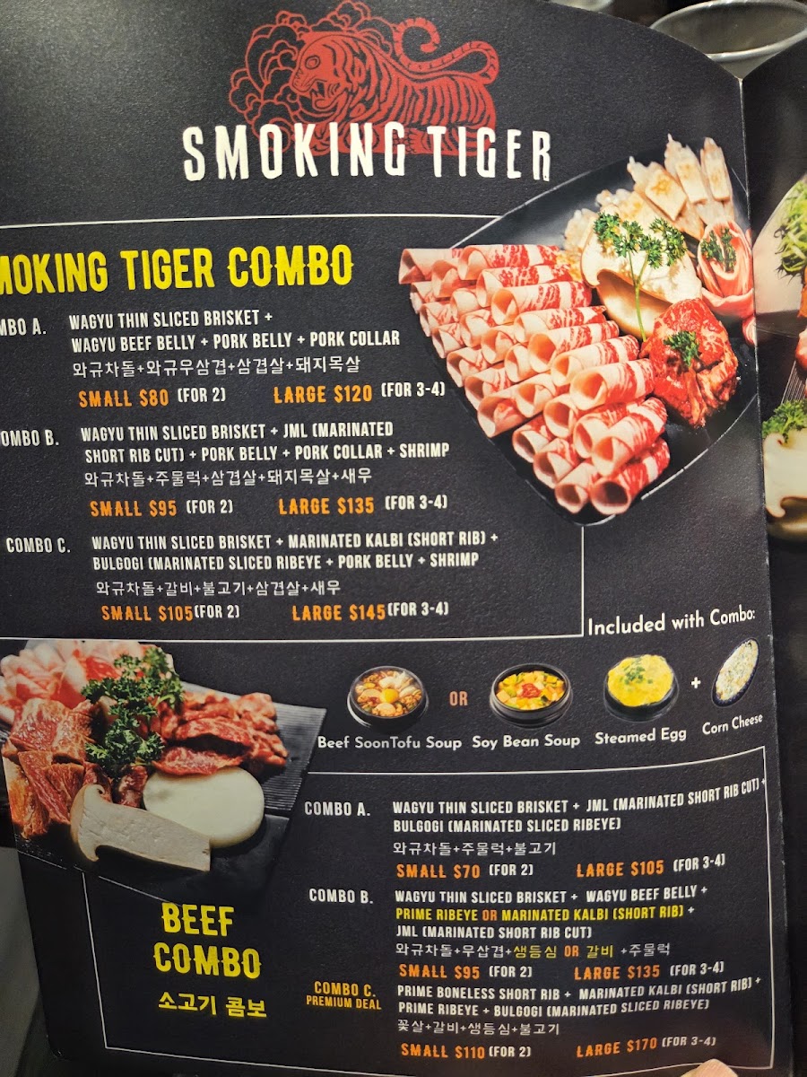 At Smoking Tiger Korean BBQ Menu, you'll find a mouthwatering array of traditional Korean BBQ options that will satisfy every craving. Located in Mesa, AZ, this vibrant spot offers an immersive dining experience where you can grill your own meats right at the table. From tender cuts of beef to savory pork belly, each dish is crafted with authentic flavors and fresh ingredients. The variety doesn’t stop there; dive into an assortment of banchan, or small side dishes, that perfectly complement the main course. Whether you’re here for a casual meal with friends or a family gathering, the menu at Smoking Tiger promises a delicious, fun-filled dining adventure with every visit.